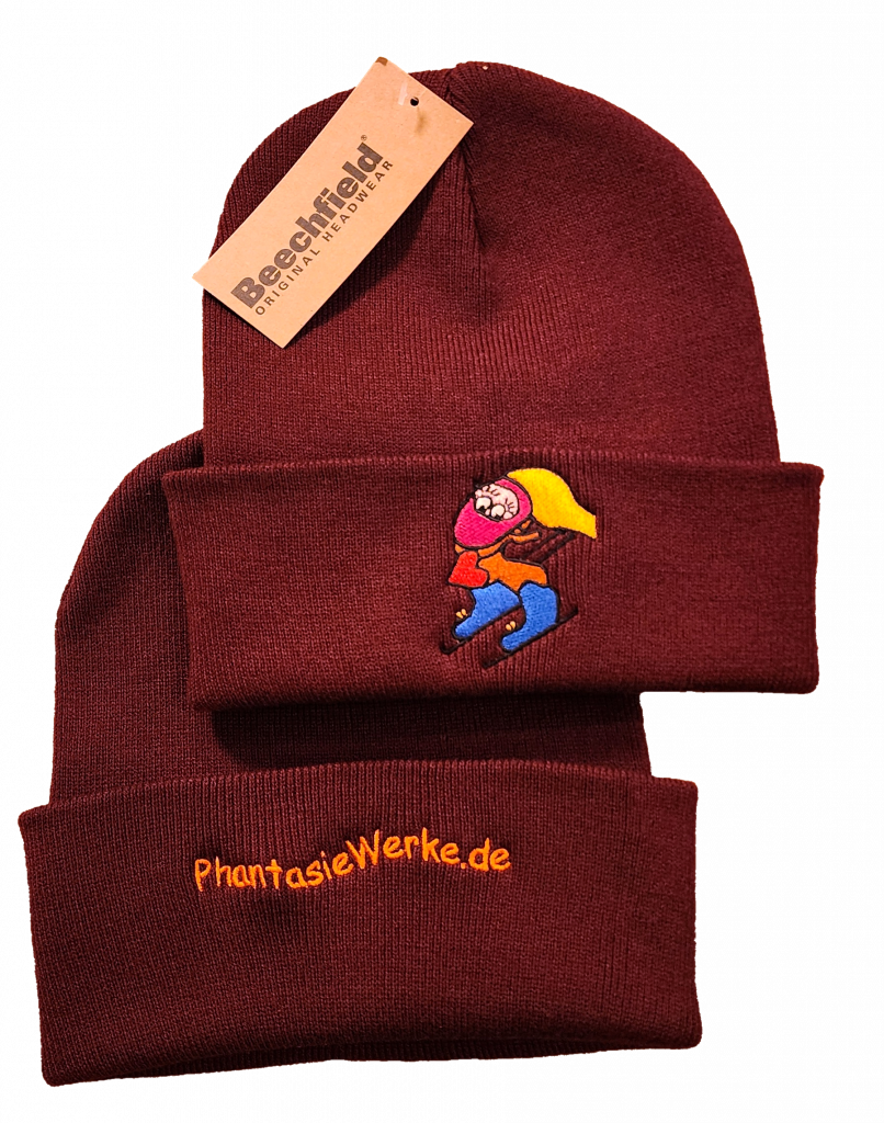 Nun gibt es die Mütze mit dem Motiv Ski-Fahrerin auch in der Farbe burgundy (Größe Unisex für Erwachsene).